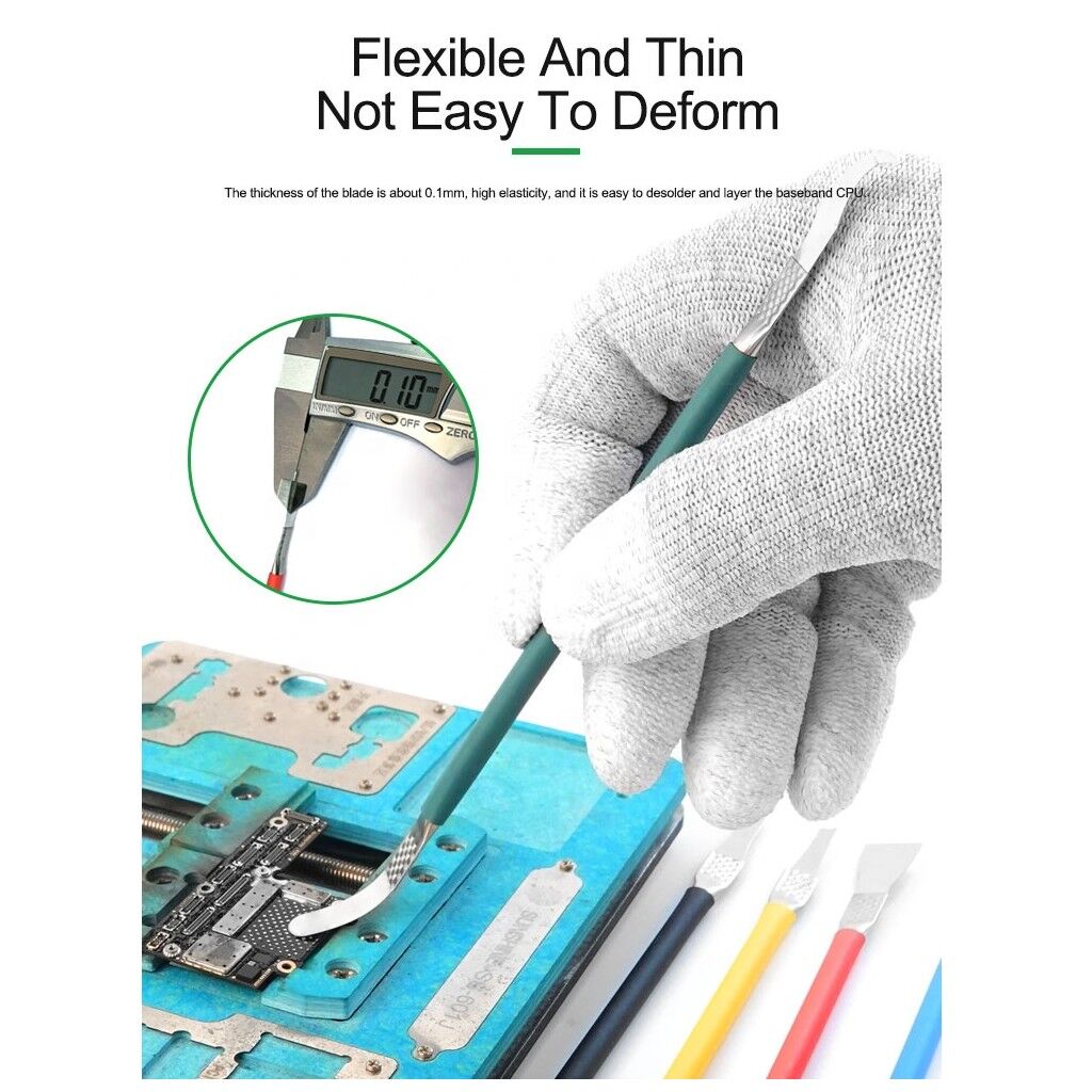 Bu Best 5’li onarım seti, anakart, BGA, CPU ve diğer hassas elektronik yüzeylerde tutkal kalıntılarını temizleme, yüzey hazırlığı yapma ve detaylı bakım işlemleri için tasarlanmış profesyonel el aletleri içerir. Teknik servisler, tamir atölyeleri ve elektronik ile uğraşan profesyoneller için ideal bir temizlik ve hazırlık setidir.