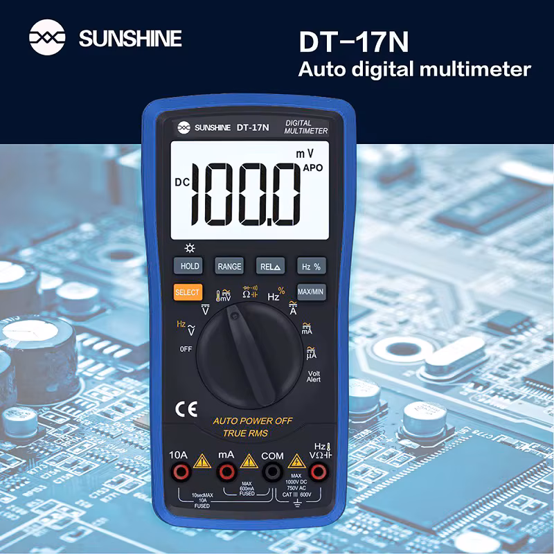 Sunshine DT-17N Dijital Multimetre, elektronik ölçümler için tasarlanmış yüksek hassasiyetli ve tam otomatik bir ölçüm cihazıdır. Elektronik tamir servisleri, cep telefonu teknik servisleri ve hobi elektroniği ile uğraşan kullanıcılar için pratik ve güvenilir bir çözüm sunar.