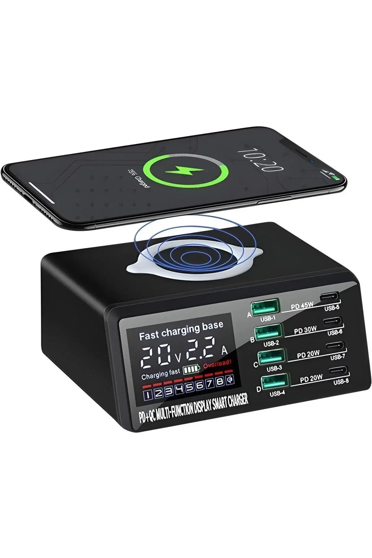 WLX-X9M 110W Çoklu Bağlantı Noktalı Akıllı Şarj Istasyonu + Kablosuz Şarj